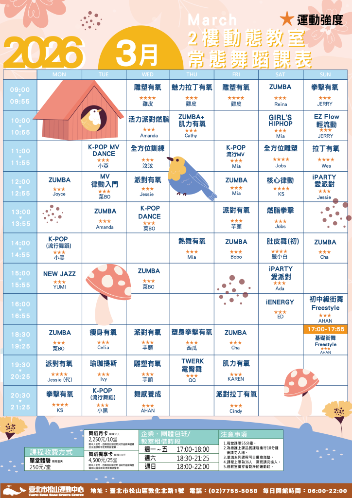活動日期 : 115/3/01-3/31 「常態限定舞蹈體驗券」取得方式 : 消費贈送 (可累計) 1. 報名 […]
